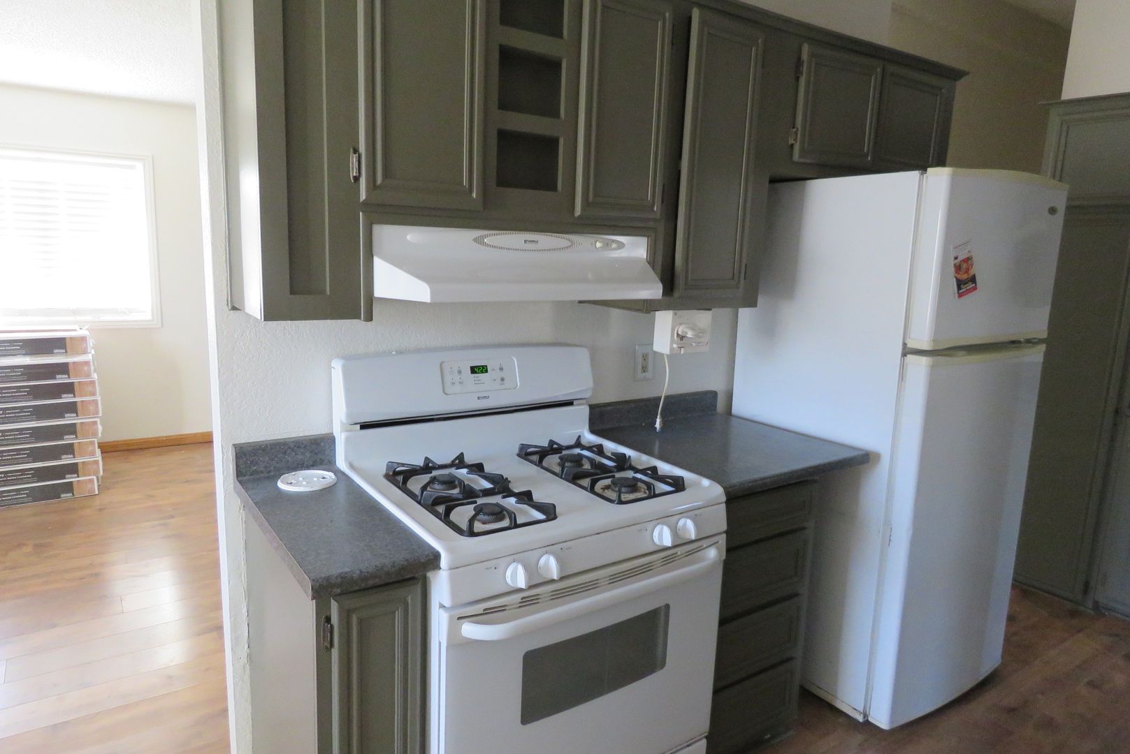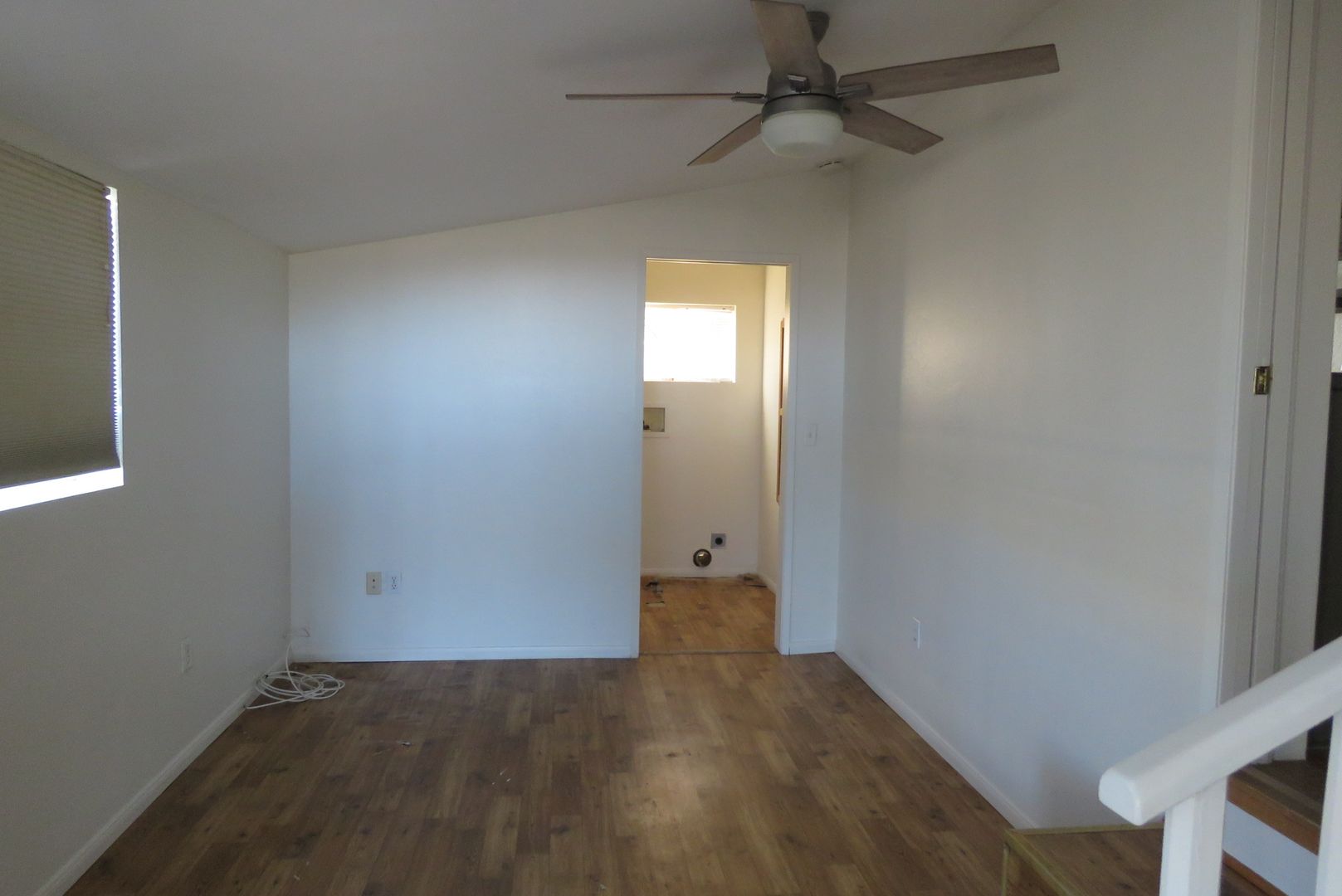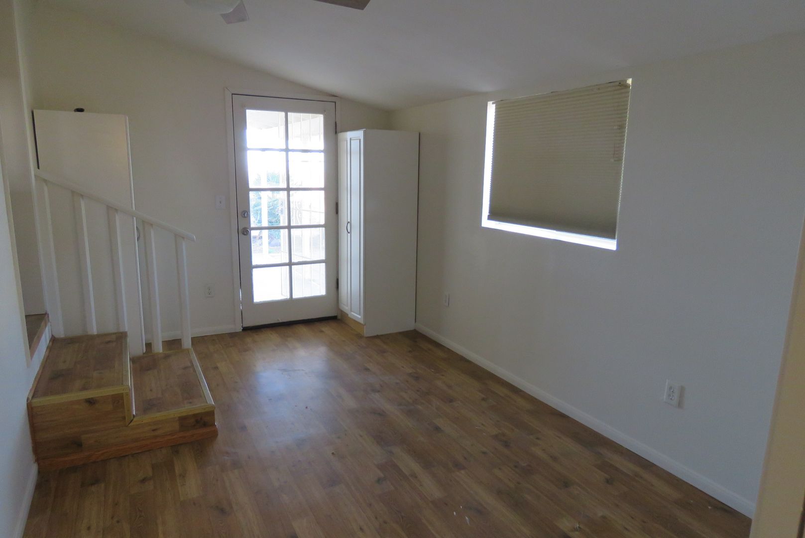 Immaculate two bedroom in a fantastic location situated on a 1.25 acre lot with panoramic views and just a block from a paved access road. Features include brand new wood flooring throughout, two bedrooms, two baths, living room plus family room or den, and east-facing covered patio. Kitchen comes equipped with a refrigerator, dishwasher, a propane gas stove and plenty of cabinets including a wall hutch. Joshua Tree National Park is just a short distance, and you can walk to the Nancy Karl Trail from the house. Home is surrounded by natural beauty and easy-care landscaping!