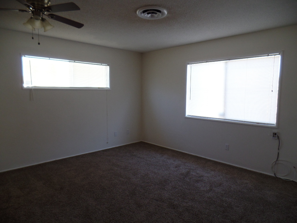 Charming and Spacious! This home has so many great features. Enter the living room to a wonderful floor-to ceiling-rock fireplace and a large view window. The kitchen is very spacious with a breakfast bar. Huge guest bath features double sinks and plenty of cabinet and counter space. Large front yard features a circular driveway, well-maintained desert landscaping, and lovely rock accents on the front of the house. Two car attached garage is accessed at the back of the home. There is a double gate to the back and a sun room. Very cozy with ceiling fans throughout. Trash included. Natural Gas for cooking and fireplace. Pets ok with prior owner approval and additional Pet Deposit. Minimum security deposit is $2,150.