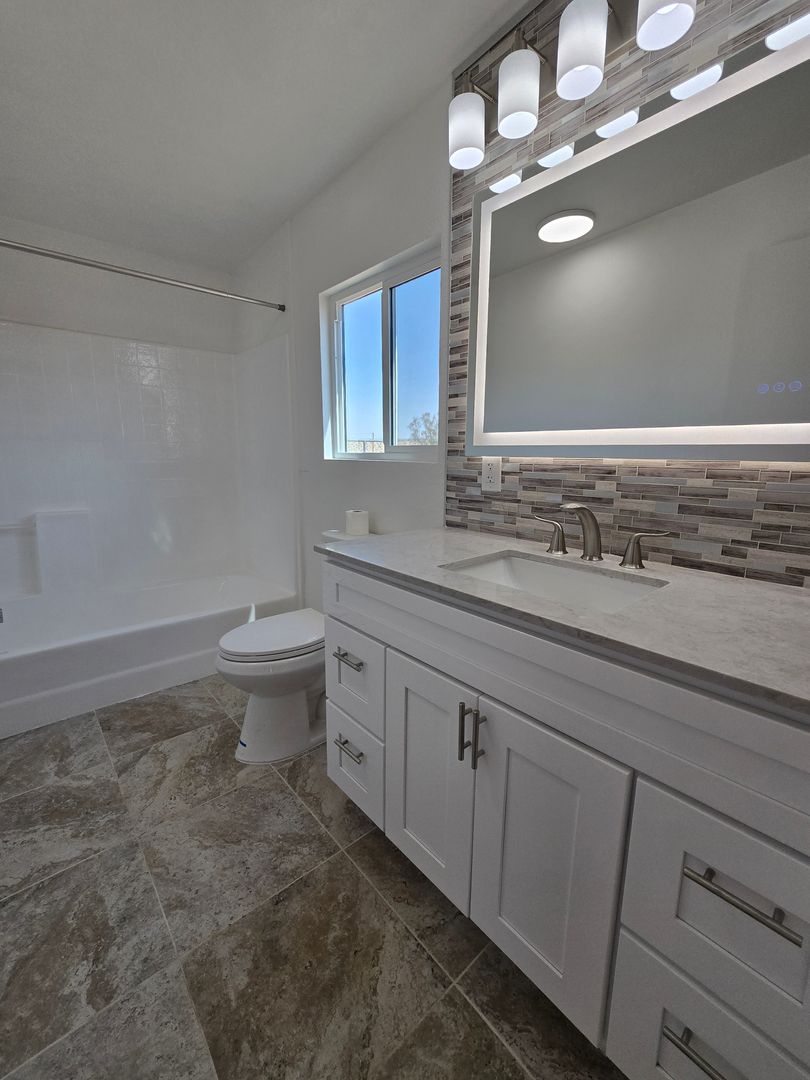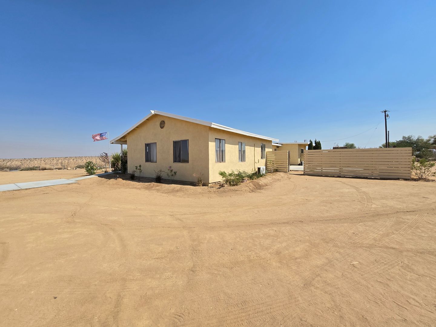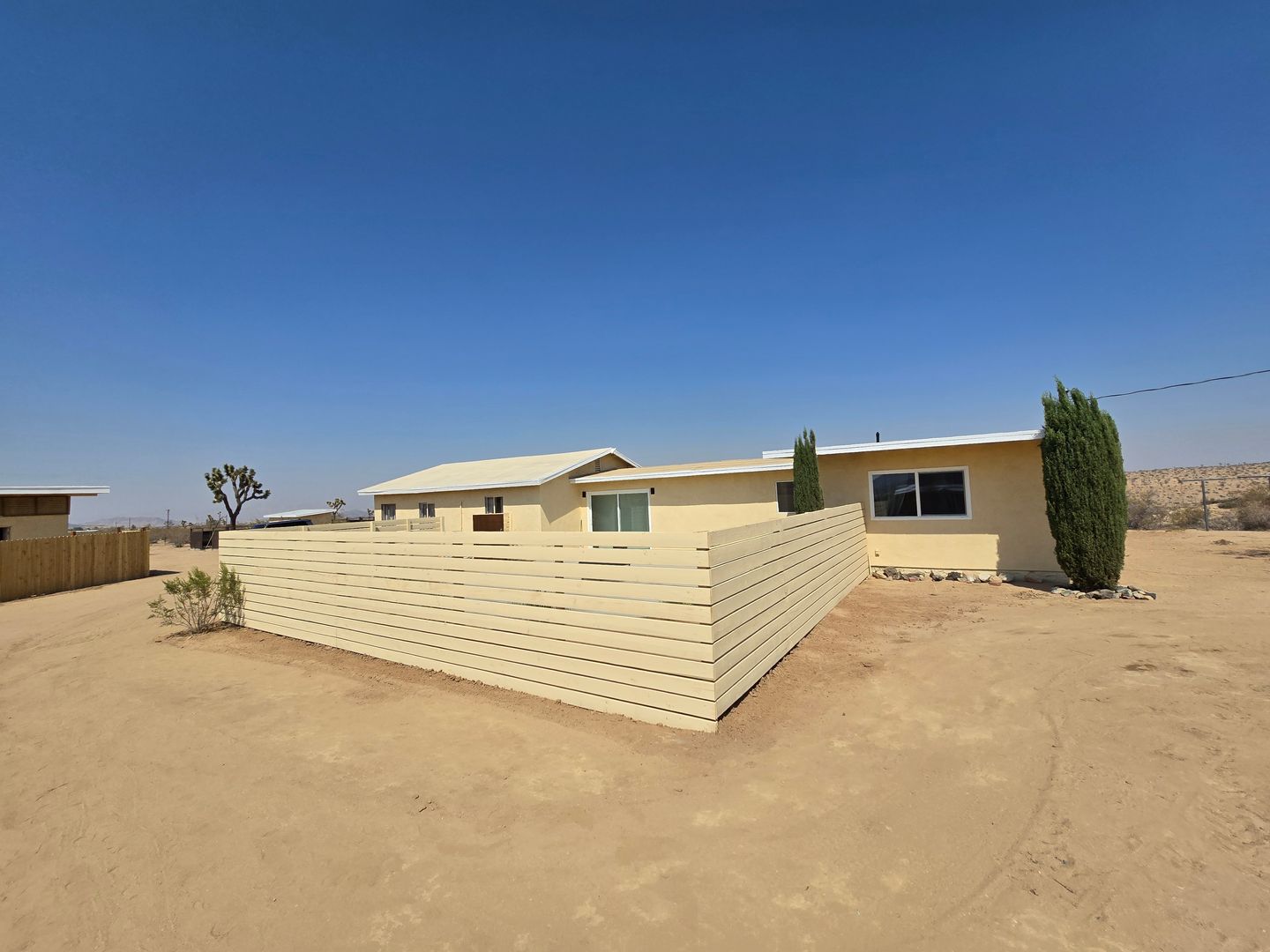 Secluded & Super Clean! This newly renovated 3-bedroom, 2-bath home in Yucca Valley features vinyl flooring throughout and a quiet, peaceful environment. Enjoy climate control with mini-split units in each room, a private patio with a gas firepit for outdoor living, and a storage shed for extra belongings. This dream kitchen boasts tons of storage, a new fridge, dishwasher, stove and microwave with quartz countertops. The property is situated in a secluded setting and has no garage, but there is a storage shed for extra belongings. Every aspect of this home has been upgraded. Clean finishes and thoughtful updates make this residence more desirable.